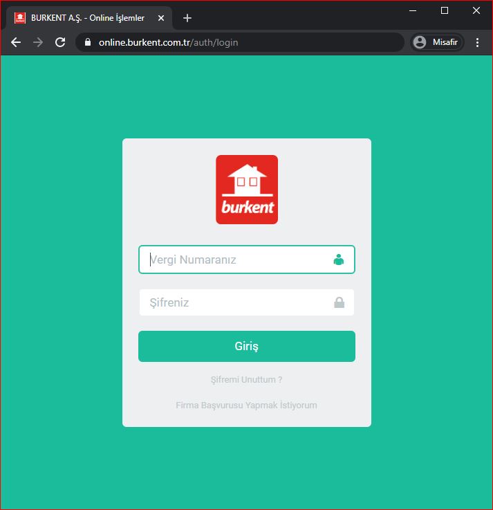 Sisteme, eğer Burkent veritabanına kayıtlı iseniz Vergi Numaranız ile değilseniz de sistem üzerinden üyelik başvurusu yaparak giriş sağlayabilirsiniz.